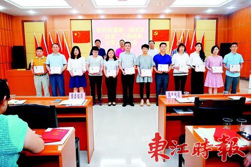 此次换届选举,社区党组织书记兼任社区居委会主任 “一肩挑”比例达100%,12个居委会主任中,7名为妇女。另外,越来越多的年轻干部进入社区“两委”班子,每个社区至少有1名35岁左右的年轻干部,“两委”班子中至少有1名全日制本科及以上学历的干部,12个社区大专以上学历89人。《东江时报》记者香金群 通讯员刘晓莉 摄