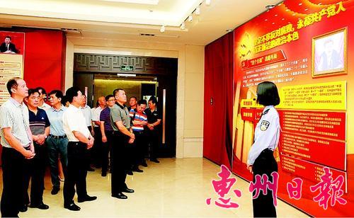 全市各县区建起了如博罗廉洁法治文化园等16个廉政警示教育基地,这些基地有的巧用当地实际,比如与当地的历史生态资源结合,如名人、红色文化等,或者与当地被查处的腐败案例结合,“本土味”浓。每年纪律教育学习月期间,各县区都组织大批党员干部前去基地参观学习,廉政“清风扑面”。
